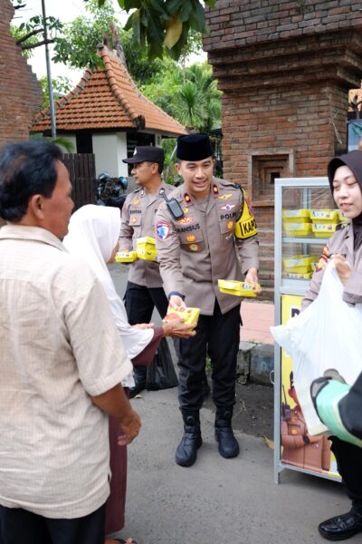 Harianbasis.com – Melalui semangat kepedulian dan kebersamaan, Polsek Taman kembali menunjukkan komitmennya hadir di tengah masyarakat melalui kegiatan Jumat Berkah dengan membagikan makanan kepada warga. Kegiatan sosial ini dipimpin langsung oleh Kapolsek Taman, Kompol Kanisius Franata yang berlangsung di Jalan Raya Wonocolo, tepatnya di depan Kantor Kecamatan Taman, Jumat (9/1/2026).