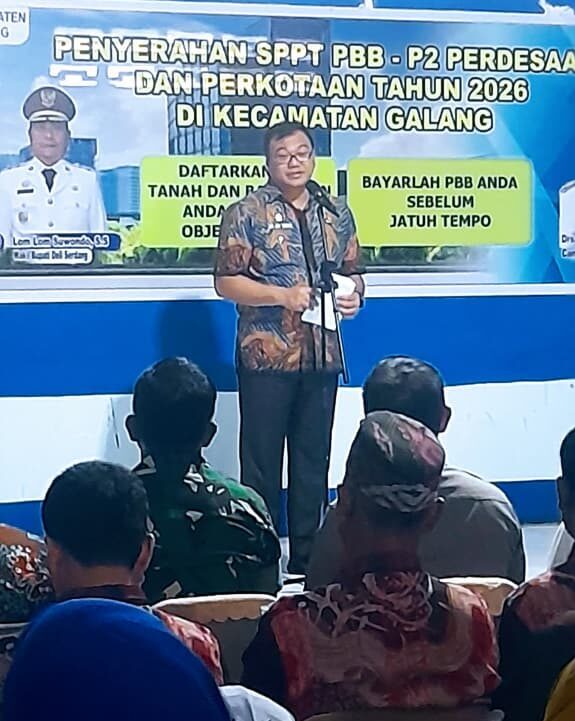Dei Serdang – Bupati Deli Serdang, dr. H. Asri ludin Tambunan, menyerahkan Surat Pemberitahuan Pajak Terutang Pajak Bumi dan Bangunan (SPPT PBB) Tahun 2026 secara simbolis kepada para kepala desa se-Kecamatan Galang. Kegiatan tersebut berlangsung di Kantor Camat Galang, Jumat (9/1/2026), sekitar pukul 10.00 WIB.